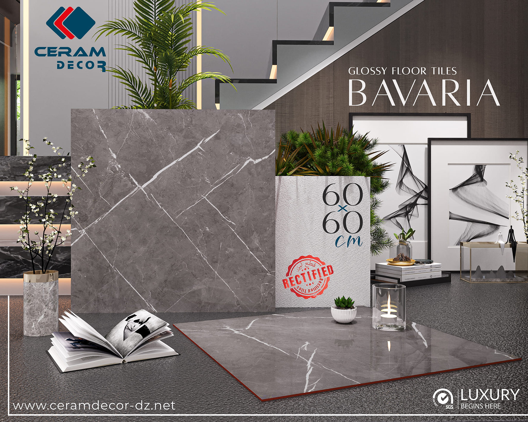 Legend Ceramic Floor Tile by CERAM DECOR is a 60x60cm ceramic floor tile designed to deliver a refined balance of elegance and durability. Its glossy finish creates a polished, upscale appearance, while the rectified laser-cut edges support a cleaner and more seamless installation result. According to the product page, LEGEND is presented as a premium flooring solution intended to enhance interior spaces with timeless visual appeal and practical long-term performance.