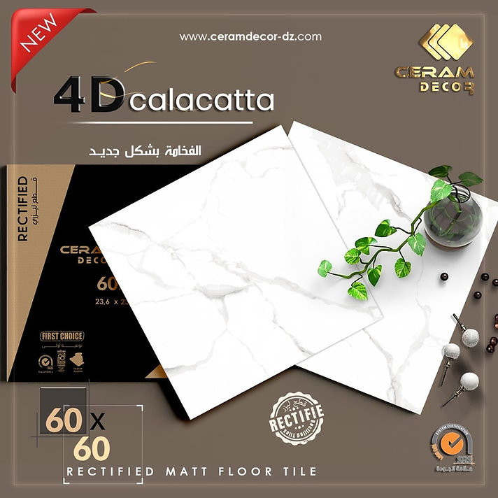 4D Calacatta Ceramic Floor Tile by CERAM DECOR is a 60x60cm ceramic floor tile designed to bring a sophisticated and timeless Calacatta-inspired look to interior spaces. Its matt finish creates a refined, elegant surface, while the rectified laser-cut edges support a cleaner and more seamless installation result. The product is presented by Ceram Decor as a white floor tile that combines luxury, durability, and a polished interior aesthetic for homeowners and projects that need an elevated ceramic flooring solution.