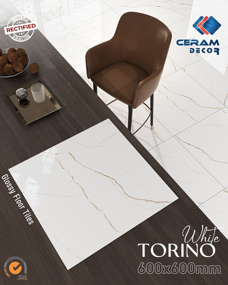 Torino White Ceramic Floor Tile by CERAM DECOR is a 60x60cm ceramic floor tile designed to bring a sleek and sophisticated finish to interior spaces. Its glossy surface helps create a bright and luxurious ambiance, while the rectified laser-cut edges support a cleaner and more seamless installation result. The product is presented by the brand as durable, easy to maintain, and suitable for both modern homes and commercial spaces, making it a strong flooring option for projects that need elegance and practical day-to-day performance.