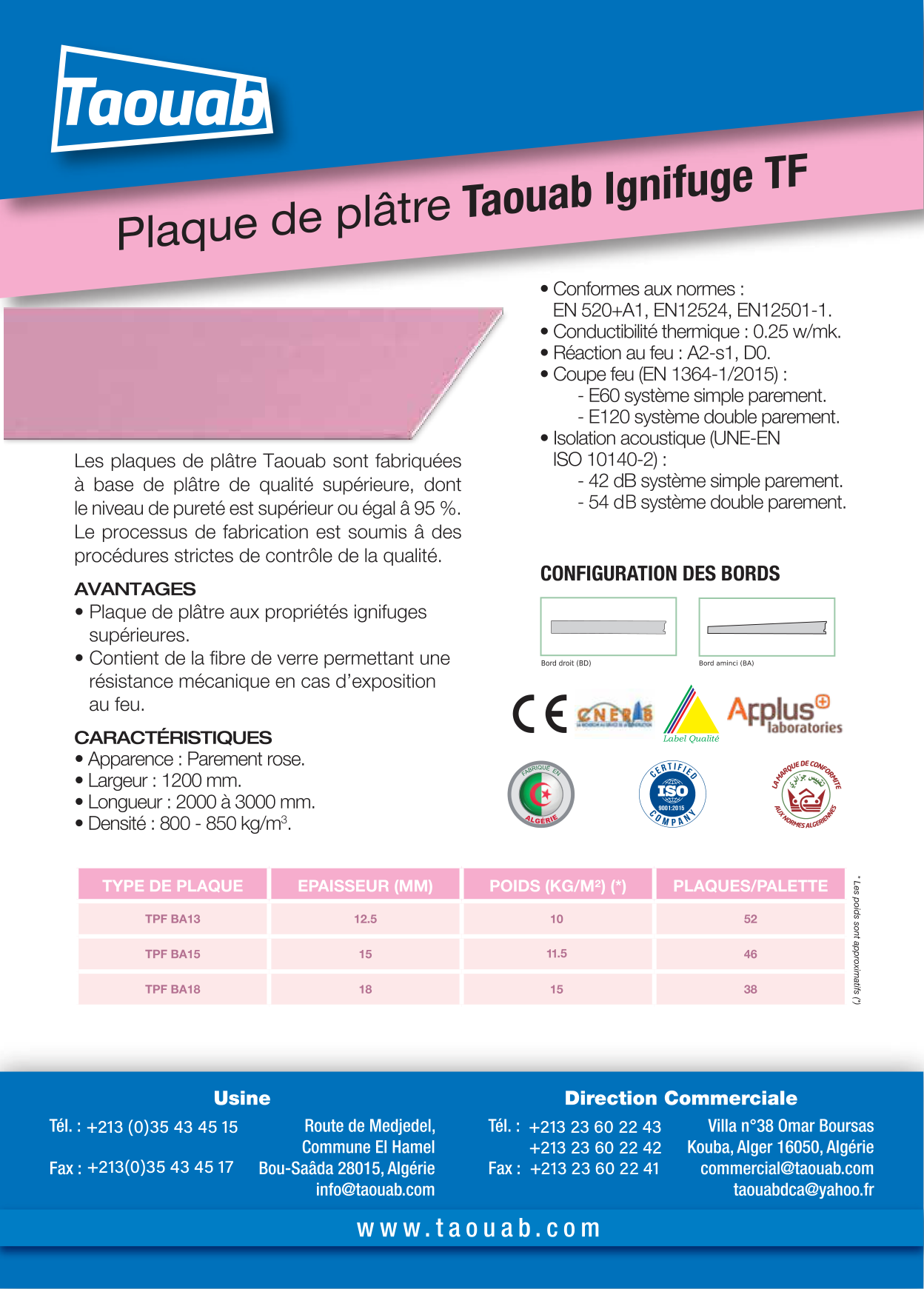 FIRE-RESISTANT GYPSUM BOARD Taouab TPF
