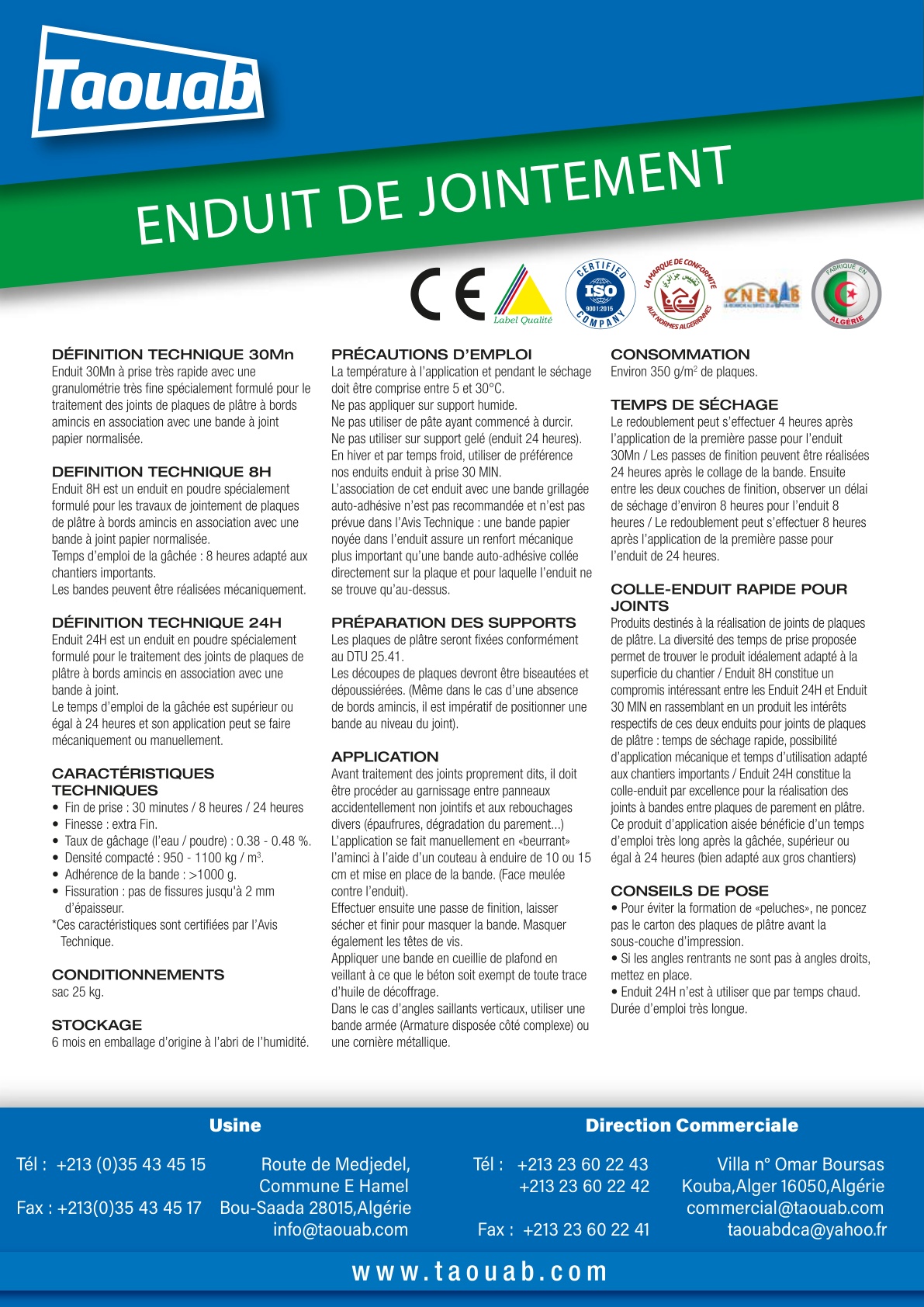 JOINT COMPOUND FOR GYPSUM BOARDS Taouab Enduit de Jointement