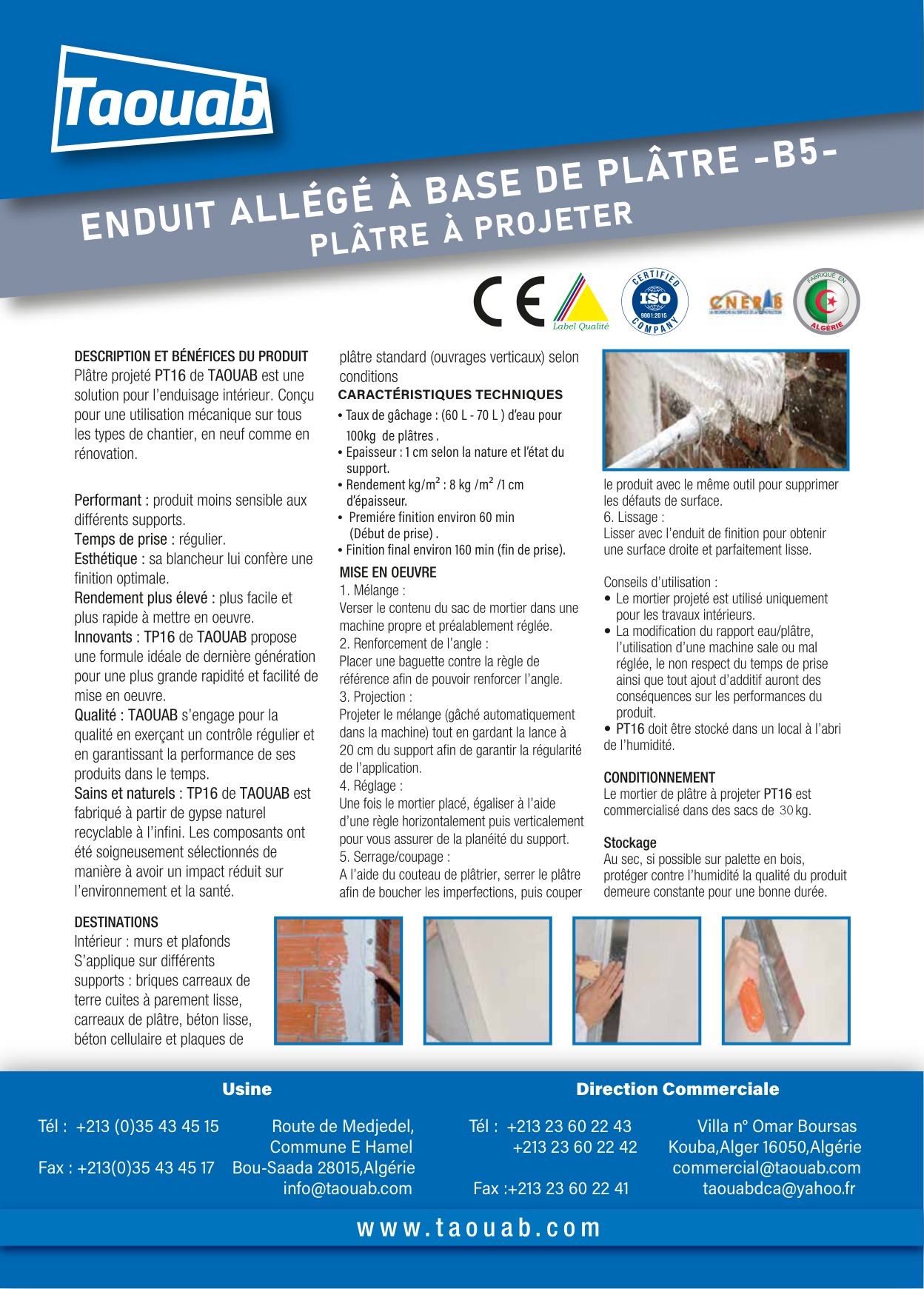 SPRAY APPLIED LIGHTWEIGHT GYPSUM PLASTER Taouab PT16 PLUS B5